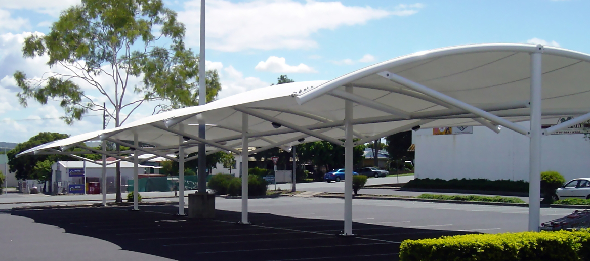 We do all types of Car parking sheds with the wheel stoppers and Markings as standards specified in the Kingdom. also can provide car parking structure, roofing structure ,space frames , walkway , prefabricated structure , skylight structure , exhibition hanger structures , cantilever structures , parking structures , fabric structures , tensile structures , retractable roofing structures , canopies , umbrellas , window awnings , tents , etc . We have in house an enormous variety of fabric structure in unique style patterns , designs , sizes and color combinations which gives the customers a huge variety of range to choose from .